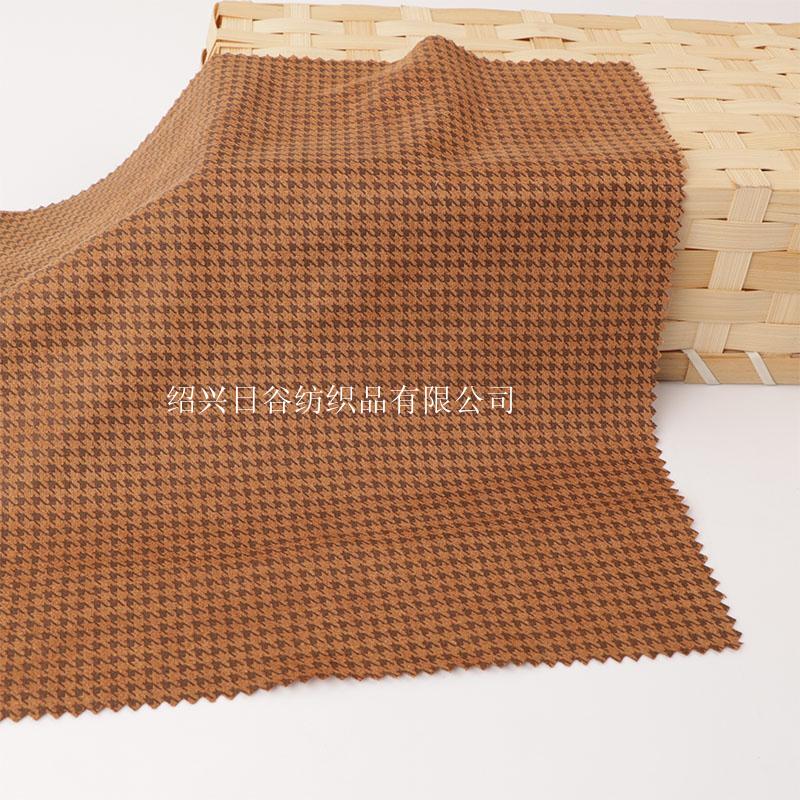 2022新款工厂批发磨砂绒压胶千鸟格麂皮绒面料服装面料